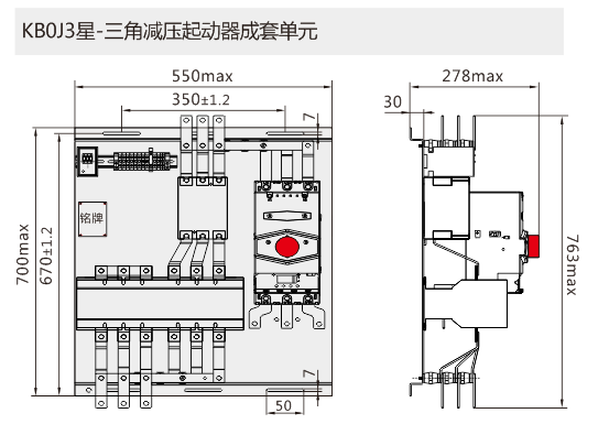 适用于电动机星-三角减压起动的控制与保护,以KB0产品作为主开关,与塑壳断路器、可逆接触器、时间继电器、电气联锁及控制回路组合构成星-三角减压起动的控制与保护装置。